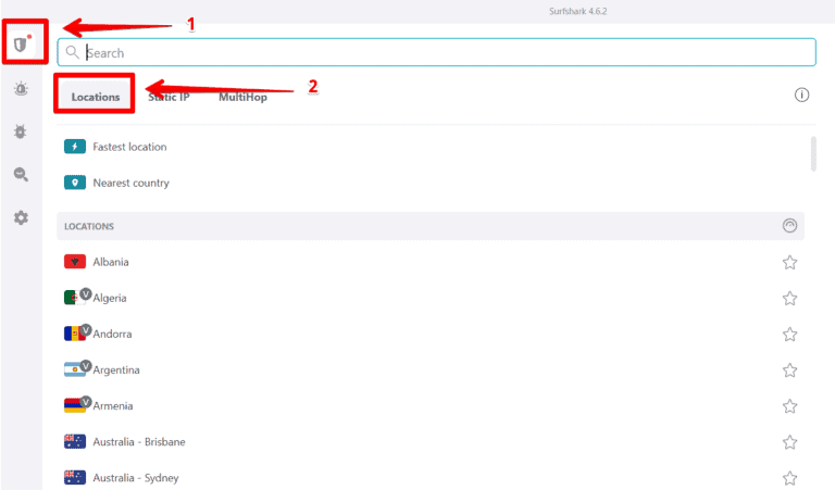 Surfshark提供了多种服务器位置,并且非常易于使用。