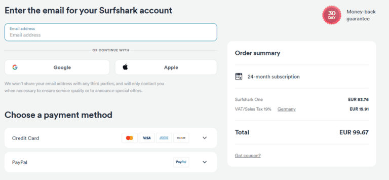 - 选择 Surfshark 计划。我建议Surfshark 2 年计划以获得最佳的节省。
