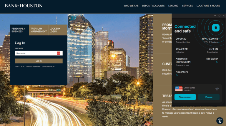 - 瞧!安全访问您的休斯顿银行帐户在美国以外的情况下,或在当地麦当劳获得公共Wi-Fi保护,而不会失去仅获得德克萨斯州内容的访问。