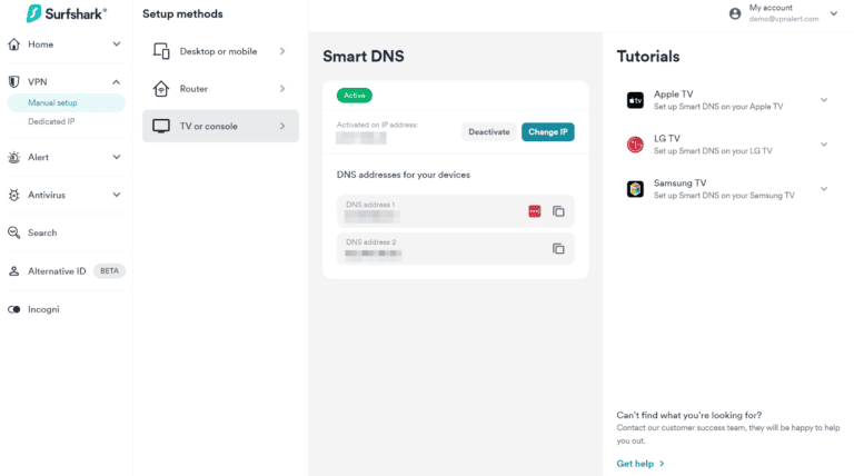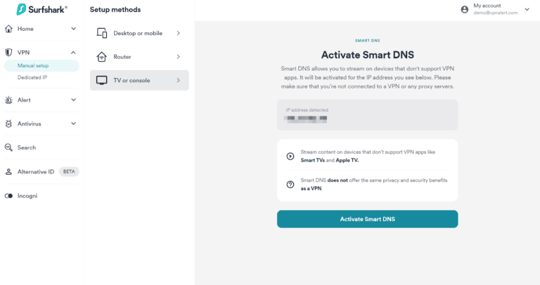 - 点击 ”电视或控制台,”然后选择“激活智能DNS。”