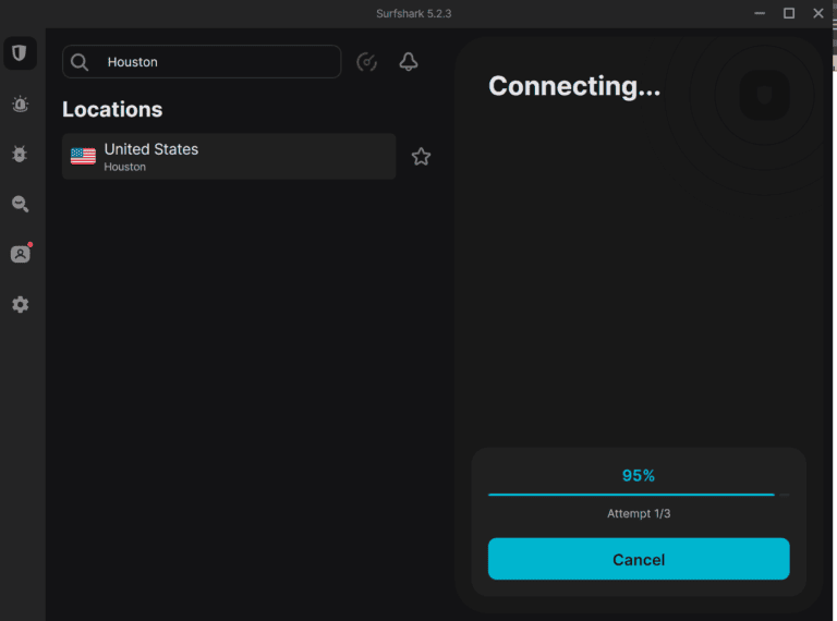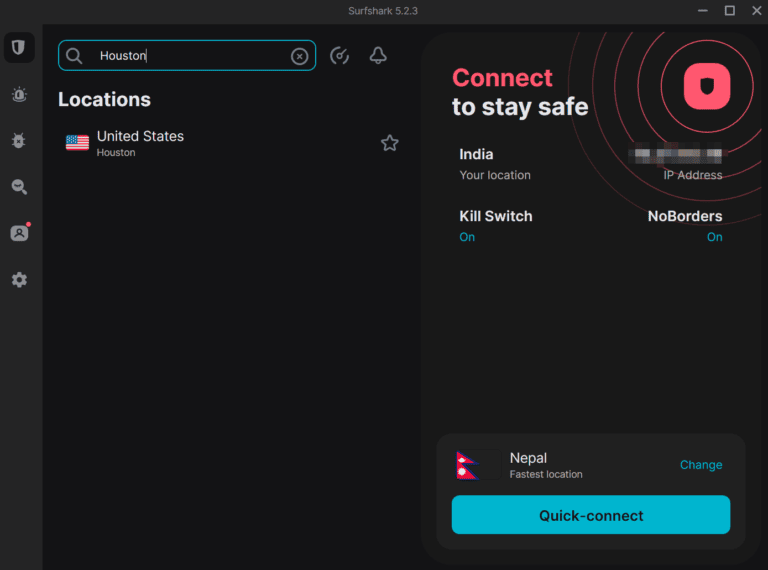 Surfshark在德克萨斯州工作,并在达拉斯和休斯敦设有2个德克萨斯服务器的位置。因此,您可以连接到其中的任何一个,以获取任何目的的本地IP地址。