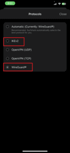 - 选择首选的流协议。经过设置>VPN设置>协议。我建议Wineguard或Ikev2用于快速流媒体和安全性。