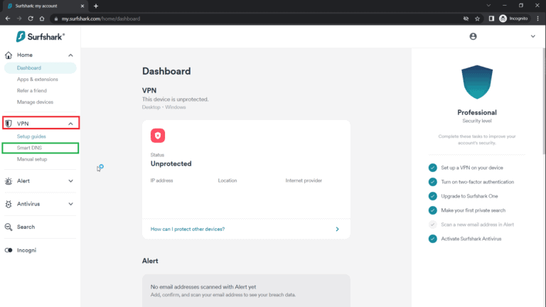 - 在右侧菜单上,单击“VPN“ 然后 ”智能DNS。”
