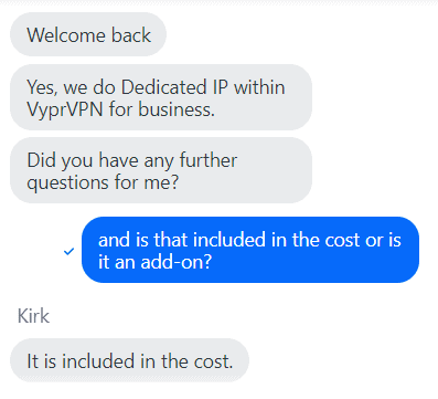 正如您所看到的,并不是每个人都能获得 VyprVPN 的专用 IP!如果您是普通消费者而不是企业,那么 VyprVPN 专用 IP 选项不适合您。