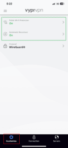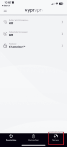 - 轻敲 ”服务器” 打开 VyprVPN 服务器位置。