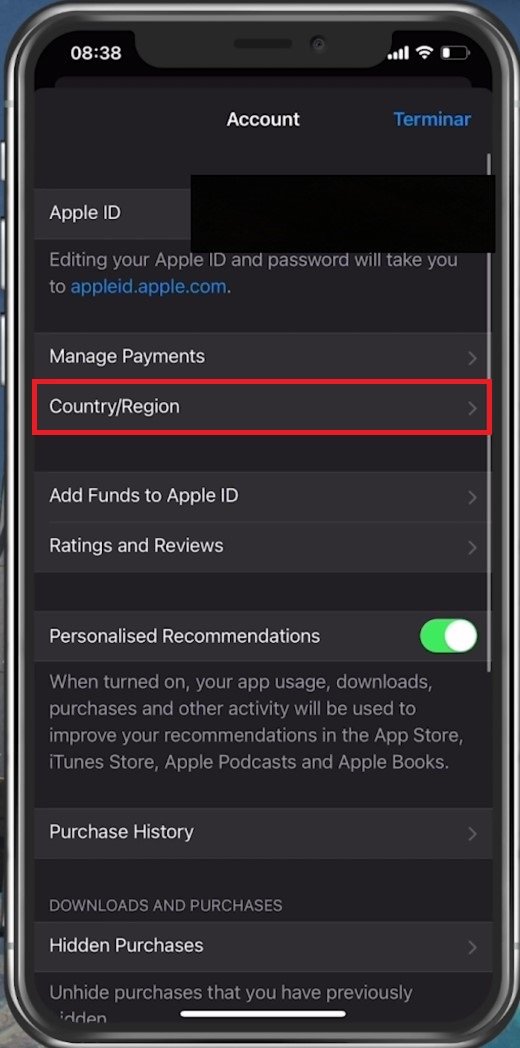 选择查看账户会要求您使用密码或面容 ID 来显示您的帐户信息。点击国家/地区。一秒钟后,选择更改国家或地区。