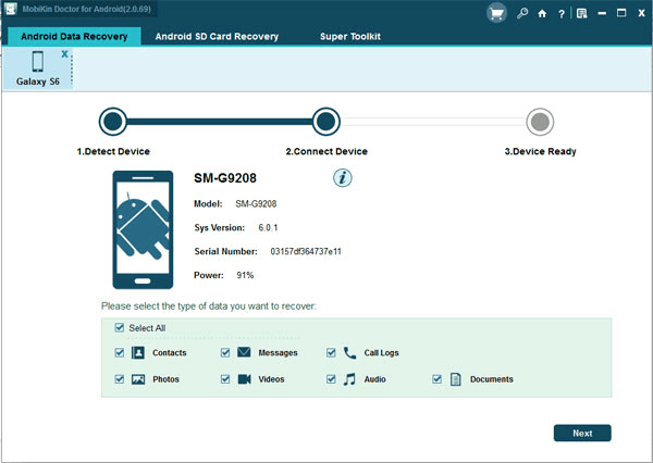 您可以使用 MobiKin Doctor 找回丢失的数据——这是一种检索 Android 数据的简单解决方案。该软件可以分析您的 Android 设备是否有任何意外删除的文件,并立即恢复它们。