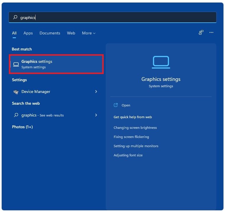 搜索图形在开始菜单中搜索以打开图形系统设置窗口。