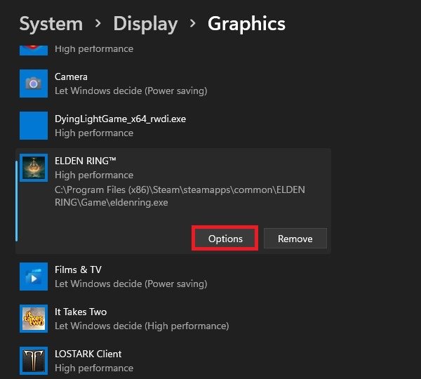 图形设置 > Elden Ring > 选项