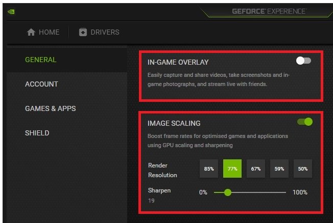GeForce Experience 设置 > 常规 > 图像缩放