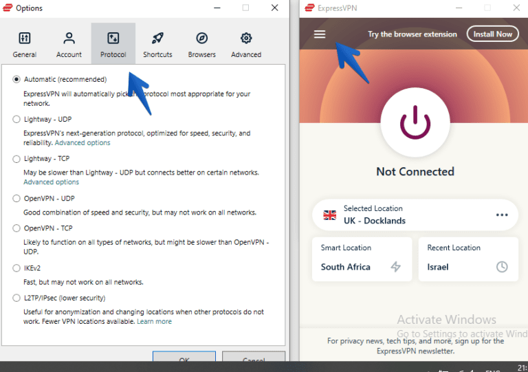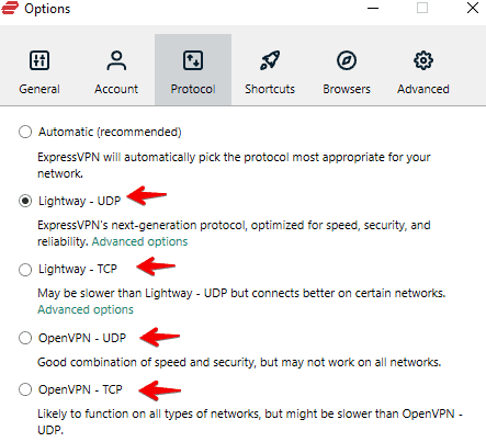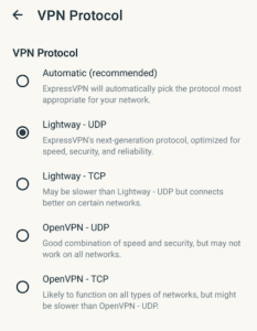 要禁用 ExpressVPN Lightway,只需切换到另一个协议。