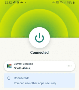 下一个,我使用 Windows ExpressVPN 应用程序连接到 Lightway UDP 协议。我选择了南非服务器以获得准确的比较结果。