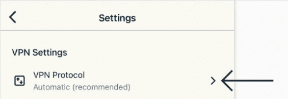 - 点击“VPN协议”。您的应用程序将被预设为“自动的”。