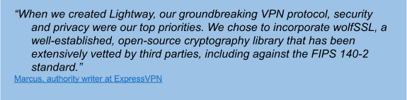 说到安全性,Lightway 使用沃尔夫SSL,它提供了基于C语言的SSL/TLS加密库。这种语言与政府用来保护网站数据的语言相同。
