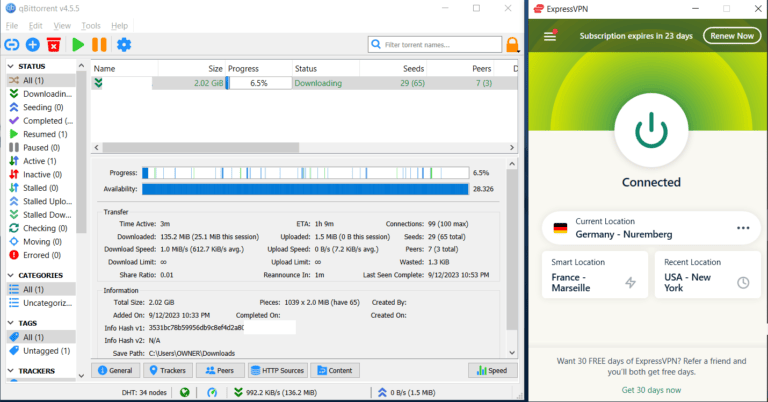 说到 P2P 文件,您可以使用 ExpressVPN 无缝下载和共享 P2P 文件。我已经测试过 ExpressVPNqBittorrent和BT,而且我从未遇到过任何 IP 或 DNS 泄漏。