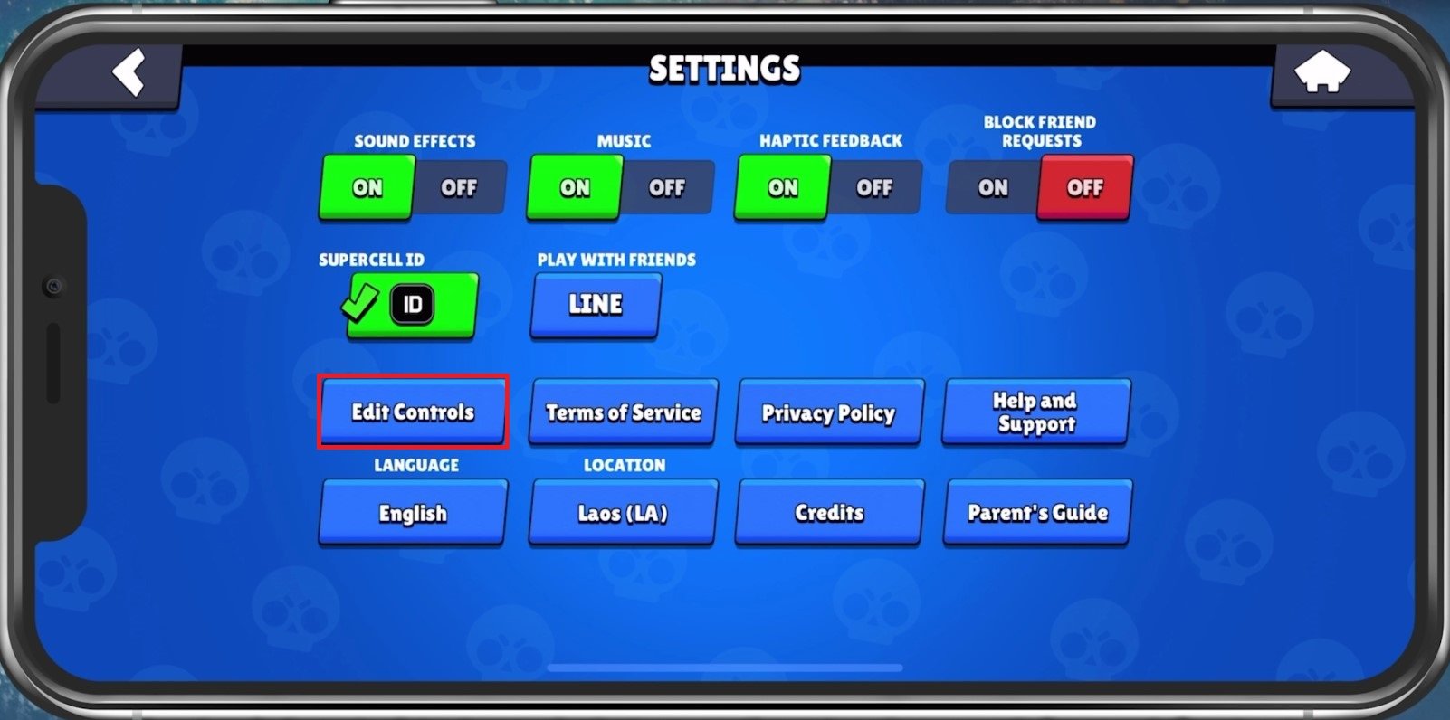 Brawl Stars 设置 > 编辑控件