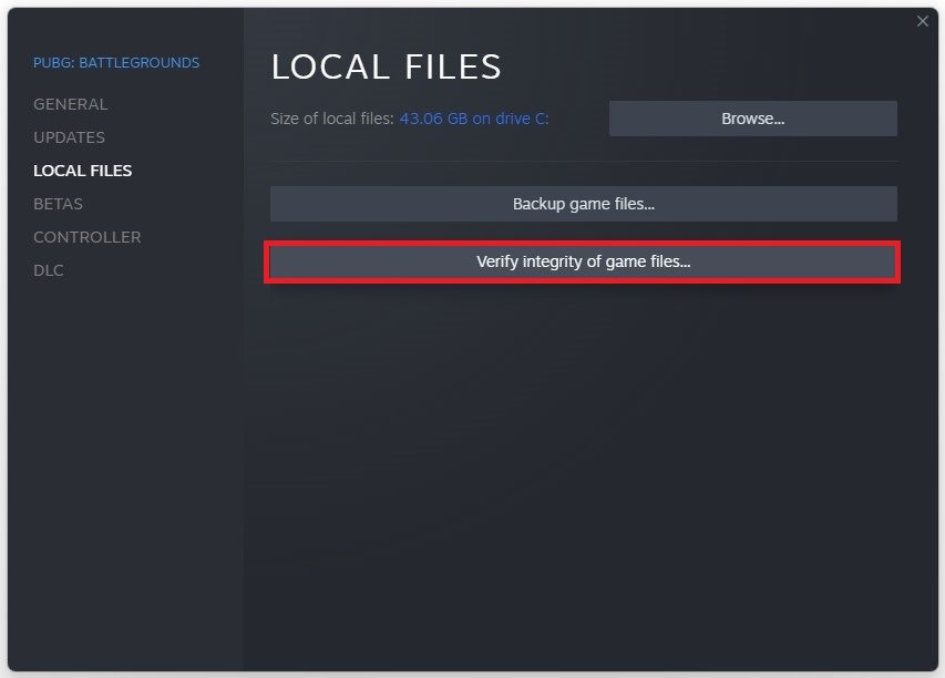 PUBG:绝地求生 > 本地文件 > 验证完整性