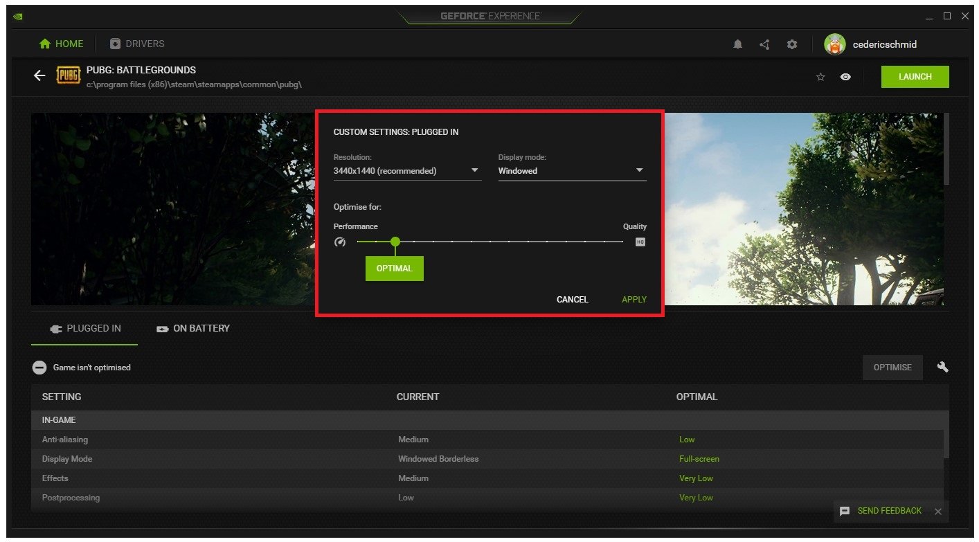 在家选项卡,选择细节对于绝地求生来说。单击扳手图标即可访问您的 PUBG 自定义设置。设置显示模式选项开窗目前;您可以在游戏内设置中将其更改回全屏。您还应该在中使用推荐的本机显示器分辨率解决环境。