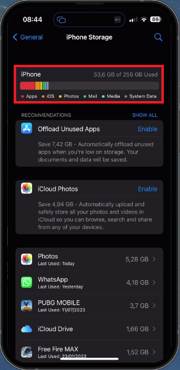 iPhone设置>一般> iPhone存储