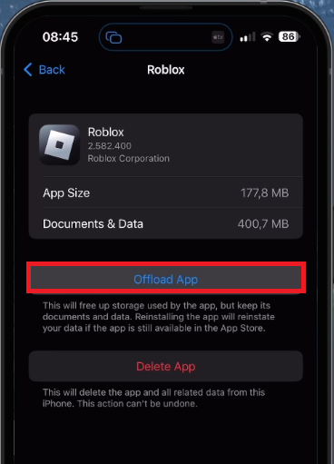 如果您的设备在存储空间上运行较低,请考虑卸载未使用的应用程序或删除不需要的文件,例如旧电影。随后,在存储设置中找到Roblox,然后点击“卸载应用程序”选项。这将清除Roblox应用程序缓存,并有效地恢复应用程序,就好像它是从App Store中新鲜安装的一样。 Android用户可以通过从其系统设置清除Roblox应用程序缓存来执行类似的步骤。