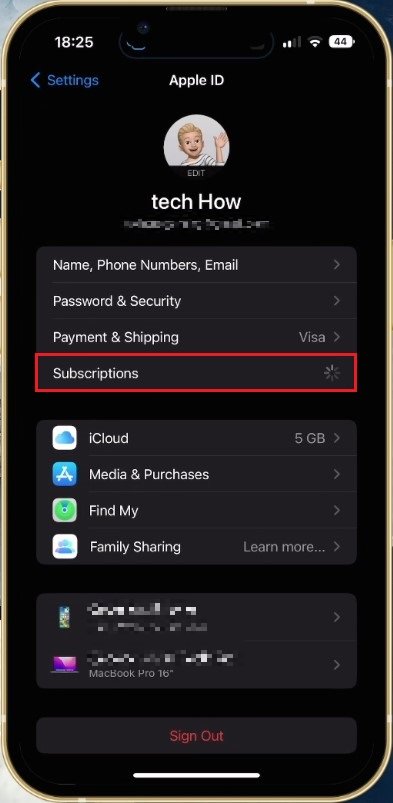 在您的 Apple ID 设置中,选择付款及运输。加载您的付款信息可能需要一些时间,并且您需要验证您的 Apple ID 帐户才能访问这些设置。