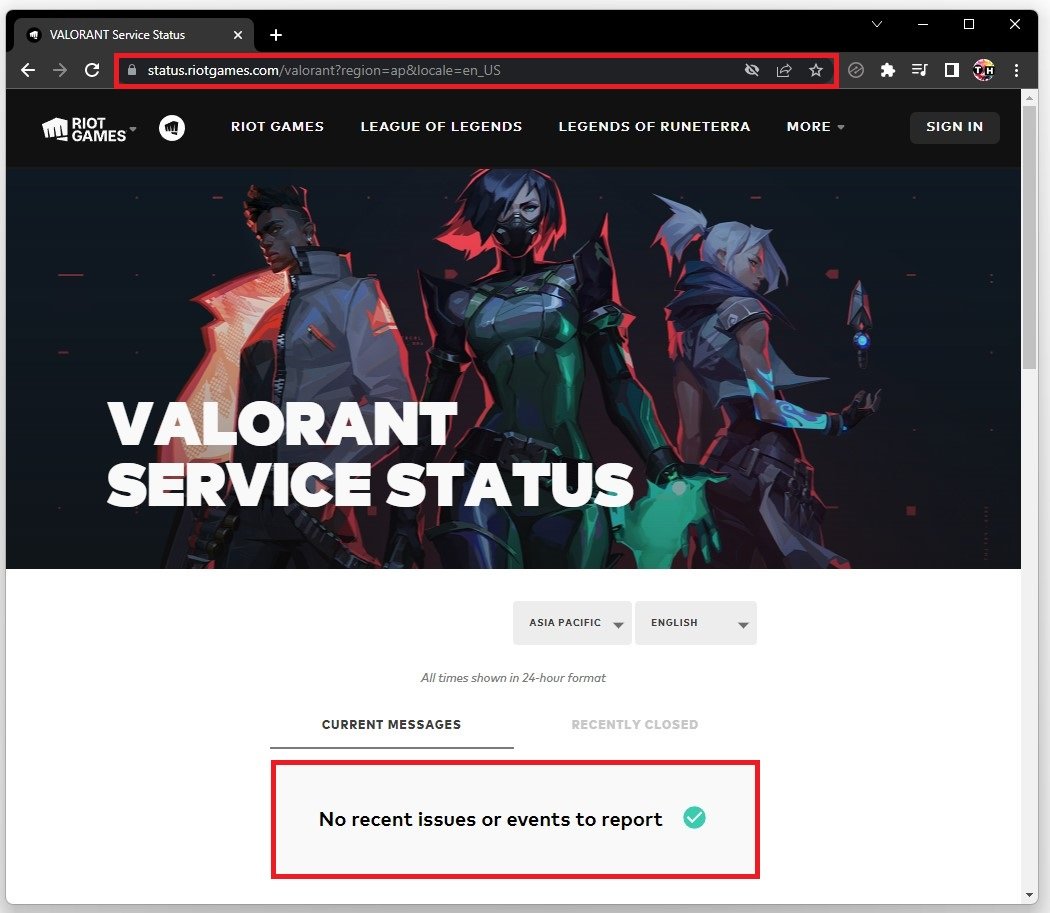 Riot服务器通常会导致平台连接错误。通过导航到确保服务器已启动并正在运行status.riotgames.com。选择估价,以及您的服务器区域。然后,您可以预览服务器问题的当前和最近关闭的消息,例如 Windows 平台的计划维护和其他问题。