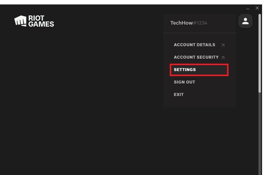 最后,重新打开您的 Riot 启动器。单击右上角的个人资料图标并选择设置。