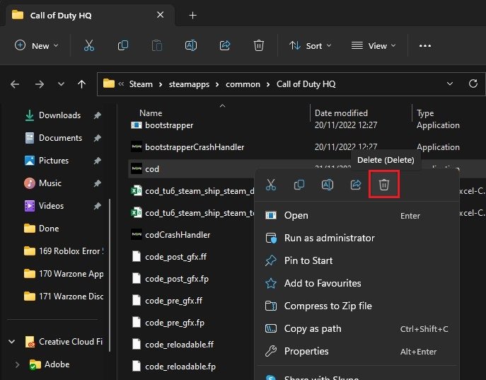 您的文件资源管理器将打开。找到 cod.exe 应用程序并将其删除。