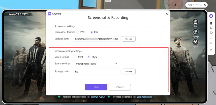 OBS截屏的另一个需求是进行屏幕录制。要在 OBS 上对手机进行屏幕录制,其他指南将要求您下载兼容的应用程序以将智能手机用作网络摄像头。但是,使用 AnyMiro,您无需下载更多应用程序。同时支持屏幕镜像和屏幕录制,轻松轻松。