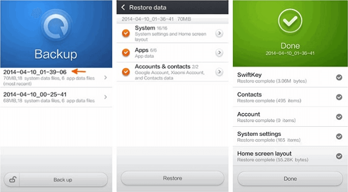 所有小米设备都配备了自己的备份功能,可让您备份和恢复小米数据。因此,如果您已经使用小米备份功能保存了包括图像在内的所有数据,那么您可以轻松地从小米备份中恢复已删除的图像。为此,您只需: