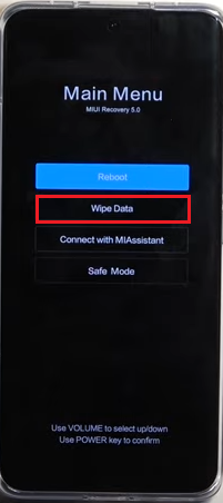 步骤 3:使用音量按钮导航至“清除数据/回复原厂设定”并确认力量按钮。