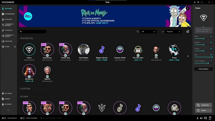 凭借其广泛的兼容性,VoiceMod 可以为 Discord、OBS、VRChat 等平台改变您的声音。但请记住,VoiceMod 在付费计划中提供了大部分功能。即使是最基本的声音和音板功能也可以在付费计划中使用。