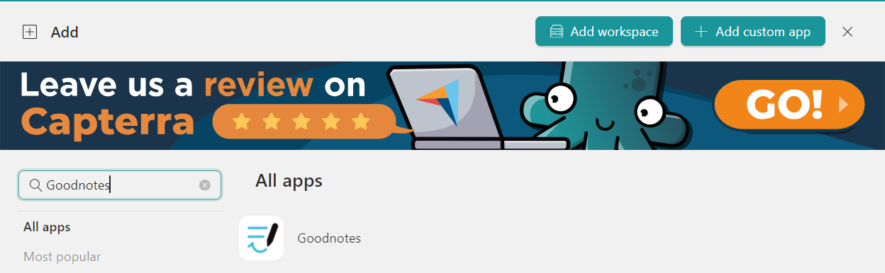将 Goodnotes 或 Notability 等应用程序添加到 Rambox 非常简单。只需按照以下步骤操作: