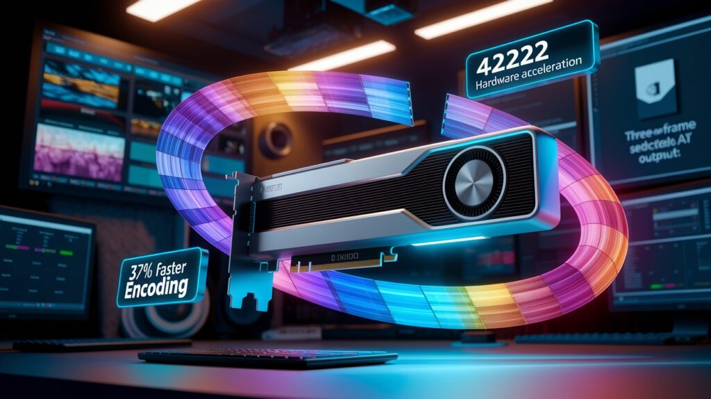 您知道您的新卡可以处理专业色彩吗? 5000系列支持4:2:2硬件加速,无需额外付费。这意味着您的视频将具有更好的颜色,尤其是在绿屏和渐变中。