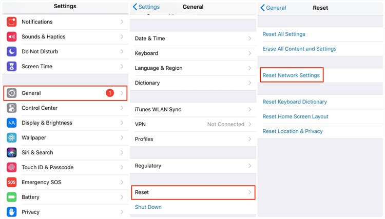 您还可以重置网络以消除可能在网络连接中造成障碍的所有故障。转至“设置”>“常规”>“重置”>“重置网络设置”以重置您的互联网。如果询问,请输入密码以确认选择。之后,重新启动 iPhone 并再次下载更新。
