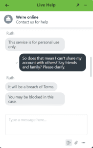 根据他们的条款和条件,您只能将您的帐户用于个人用途。请记住,多方使用可能会导致限制或阻止。