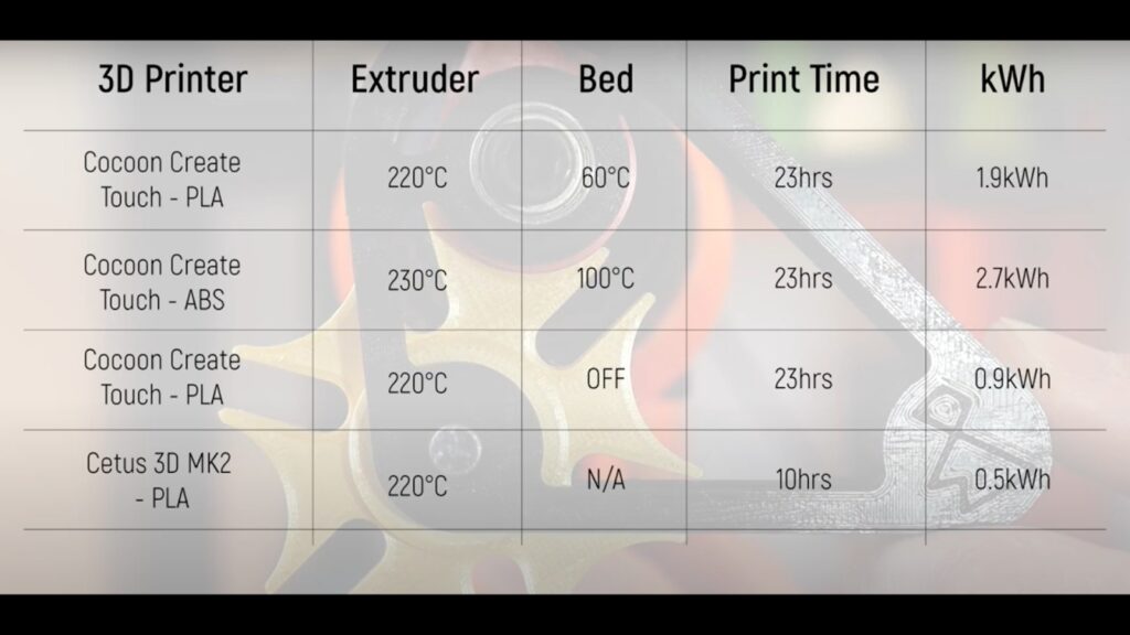 ABS打印使用更多的电力,因为它需要更高的喷嘴温度(240°C vs 200°C),并且经常需要加热的床用法。
