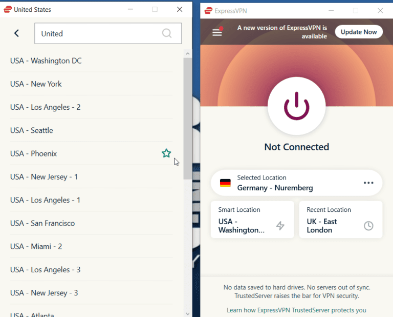 - 超快的串流速度:尽管它已自动启用混淆(VPN 速度杀手),ExpressVPN 优于 NordVPN其 35Mbps 的速度。确保启用其独有的光路协议也。