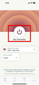 - 打开 ExpressVPN 应用程序并单击电源按钮以连接到服务器。