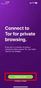 - 打开 Tor/Onion 应用程序并点击“连接”(Android)或“连接到 Tor”(iOS)。