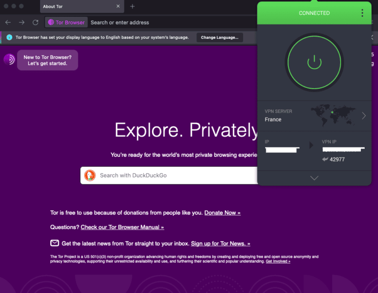 - 你都准备好了!打开 Tor 浏览器之前,请确保您的 PIA 连接处于活动状态。
