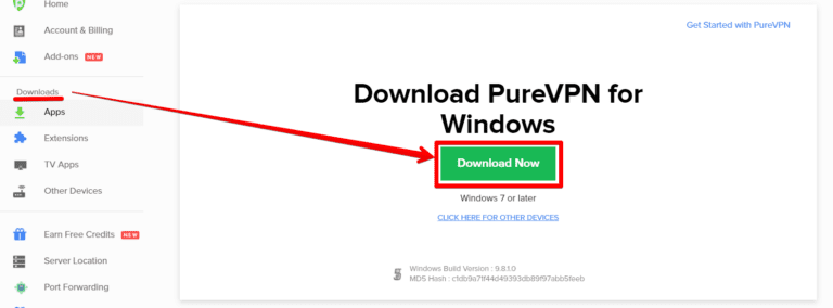 - 下载并安装 PureVPN。我将在本指南中使用 Windows 版本。