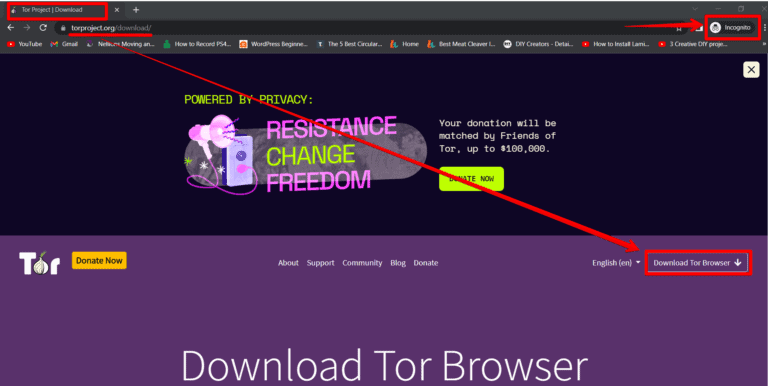 - 获取 Tor 浏览器(免费)。我建议访问托雷网站使用您的浏览器私人/隐身模式。