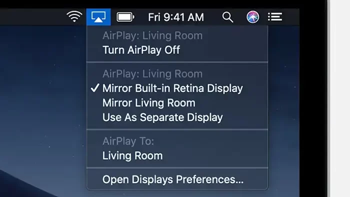 如果您拥有一台运行以下操作系统的 MacBookmacOS Big Sur 11.0 或更低版本,您可以在菜单栏中找到 AirPlay 状态图标。