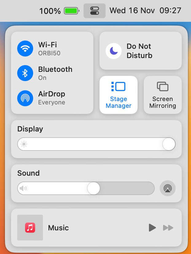 (3) 单击控制中心Mac 主屏幕右上角的图标。