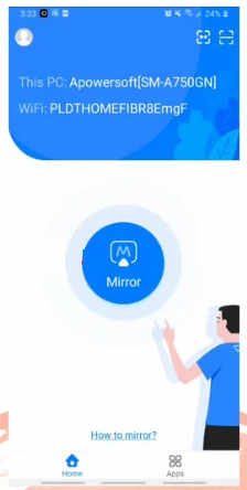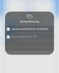 (1) 打开Apowermirror应用程序后,点击镜子按钮并选择您的东芝电视。