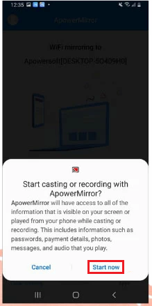 (2) 点击屏幕镜像移动设置上的选项,然后点击现在开始按钮将内容从手机流式传输到电视。
