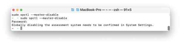 如果您已经熟悉关闭 Gatekeeper(或再次打开它),那么您可能已经知道这些步骤,因为尽管警报对话框、警告和系统设置本身发生了巨大变化,但终端的核心命令保持不变。