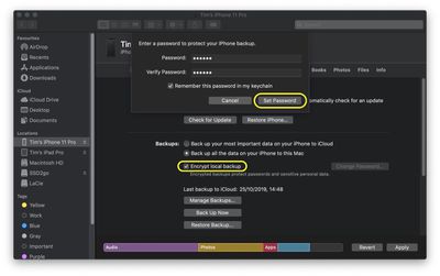 如何在 macOS Catalina 中加密 iOS 设备备份