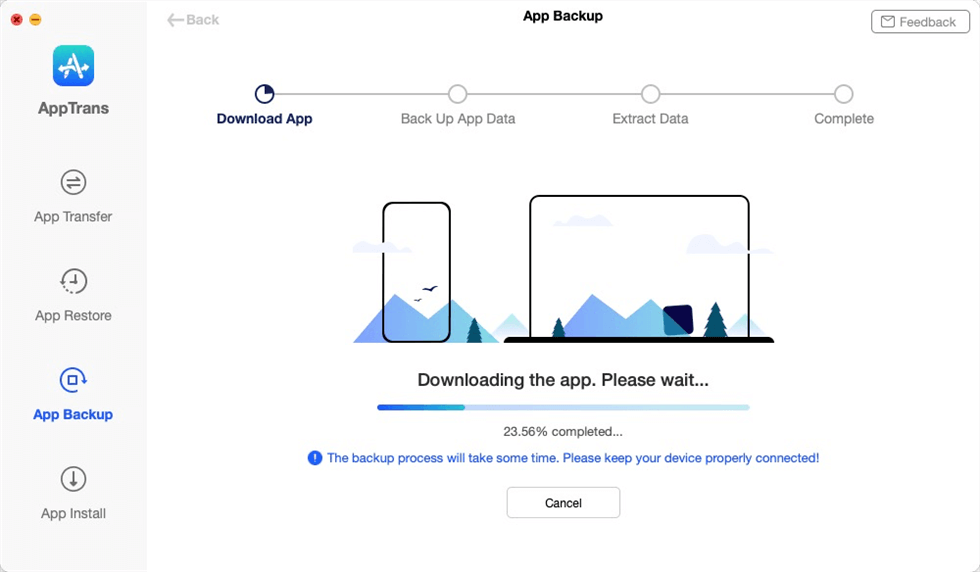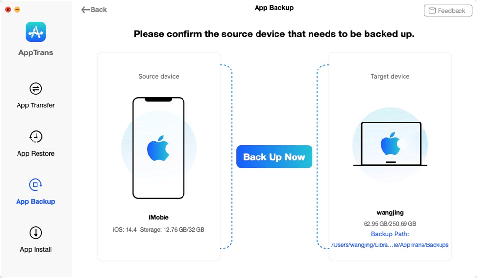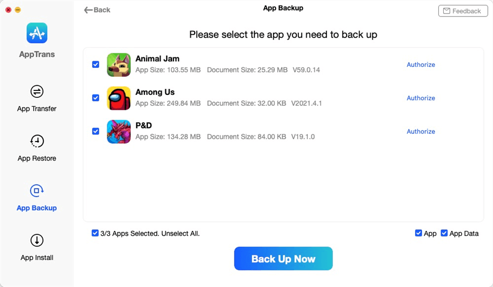 请免费下载AppTrans并按照以下步骤备份您的应用程序和应用程序数据: